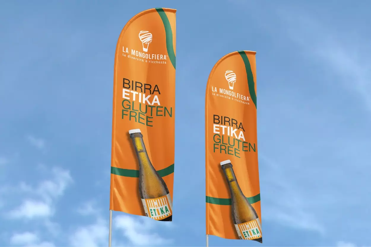 Con lo stesso approccio inclusivo e coerente, abbiamo realizzato anche il materiale promozionale per Birra Etika, nata dal recupero del pane invenduto. Una birra “educativa” che racconta, attraverso il design e i contenuti, il valore del riuso e della responsabilità sociale. Ogni elemento grafico è stato pensato per trasmettere, in modo semplice e diretto, il messaggio di consapevolezza che guida il progetto.