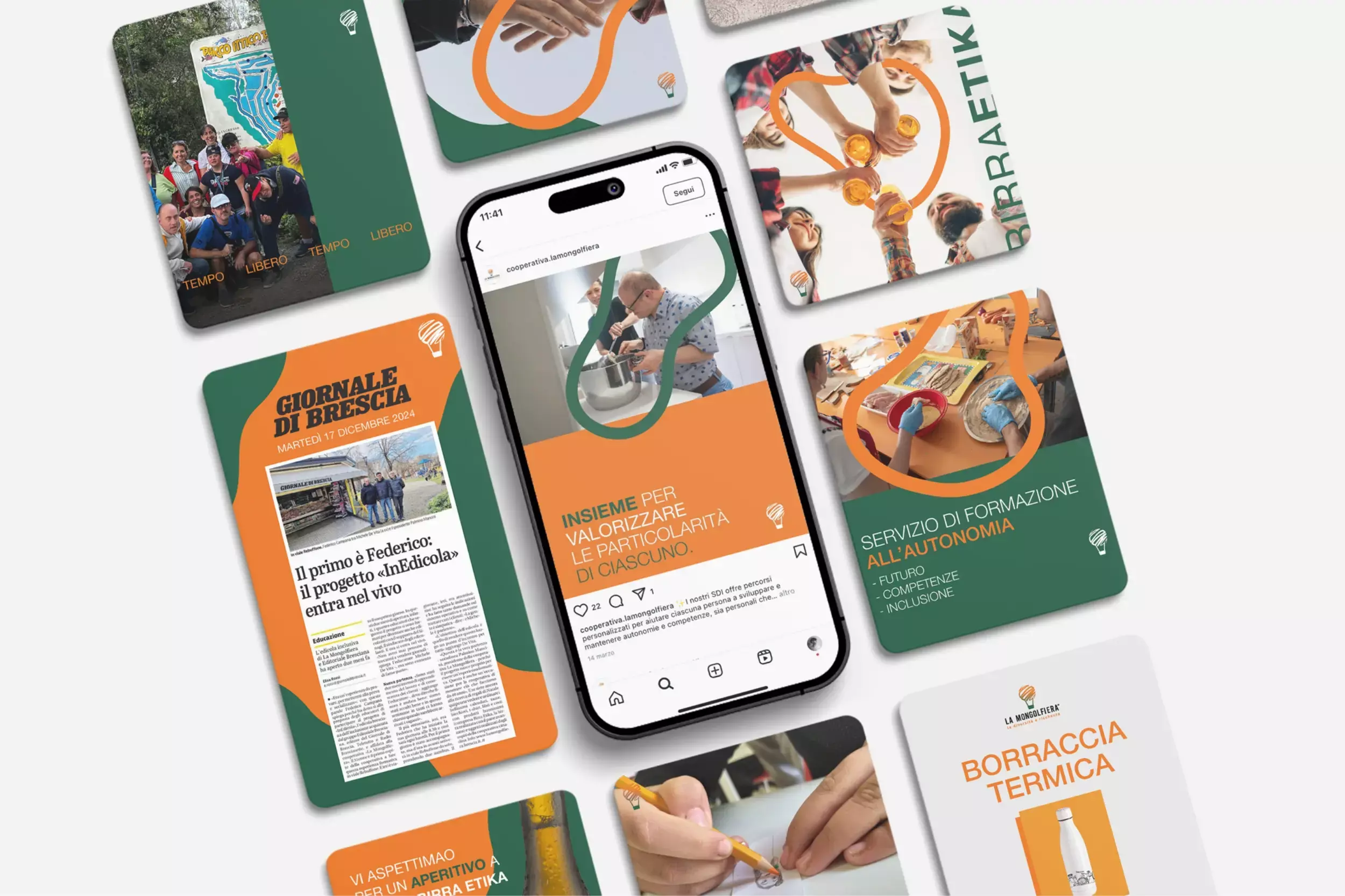 Per La Mongolfiera, cooperativa sociale attiva a Brescia dal 1986 nel supporto a persone con disabilità e fragilità, abbiamo costruito un progetto di comunicazione a partire da un’esigenza fondamentale: rendere ogni contenuto il più accessibile possibile. Il focus è stato sin da subito orientato alla semplificazione e alla chiarezza, in particolare nella scrittura dei testi, per facilitare la comprensione da parte di tutti, senza rinunciare all’identità e al tono autentico dell’organizzazione.